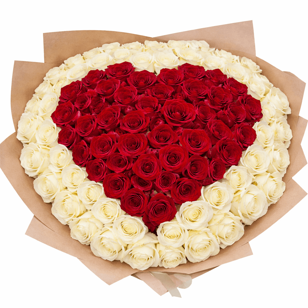 Преподносите эксклюзивный подарок каждый раз с букетом из белых и красных 101 розы. Каждый цветок идеально подходит для выражения чувств к любимому человеку, а также ваших отношений в целом.