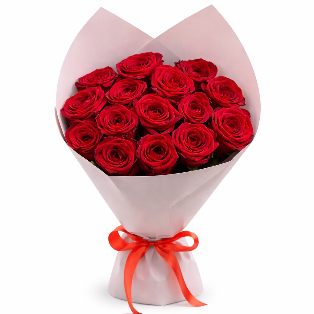 Букет из 15 красных роз — это элегантный и выразительный подарок, который идеально подходит для признания в любви, романтического сюрприза или важного события. Насыщенный красный цвет роз символизирует страсть, уважение и искренние чувства, а аккуратно собранная композиция выглядит стильно и торжественно.