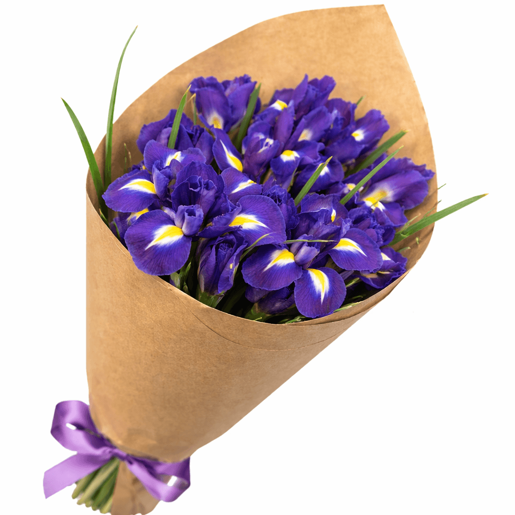 Иридии создают ощущение свежести и весны, а минималистичное оформление подчёркивает природную красоту цветов, не перегружая композицию лишними деталями. Такой букет подойдёт для поздравления, романтичного жеста, выражения благодарности или просто чтобы подарить хорошее настроение близкому человеку.
