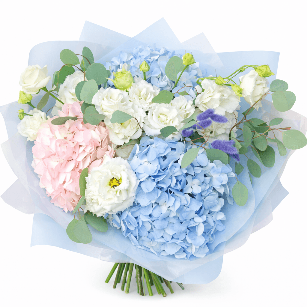 Главная Букеты Сборные и экзотика Нежный букет из гортензии и лизиантуса