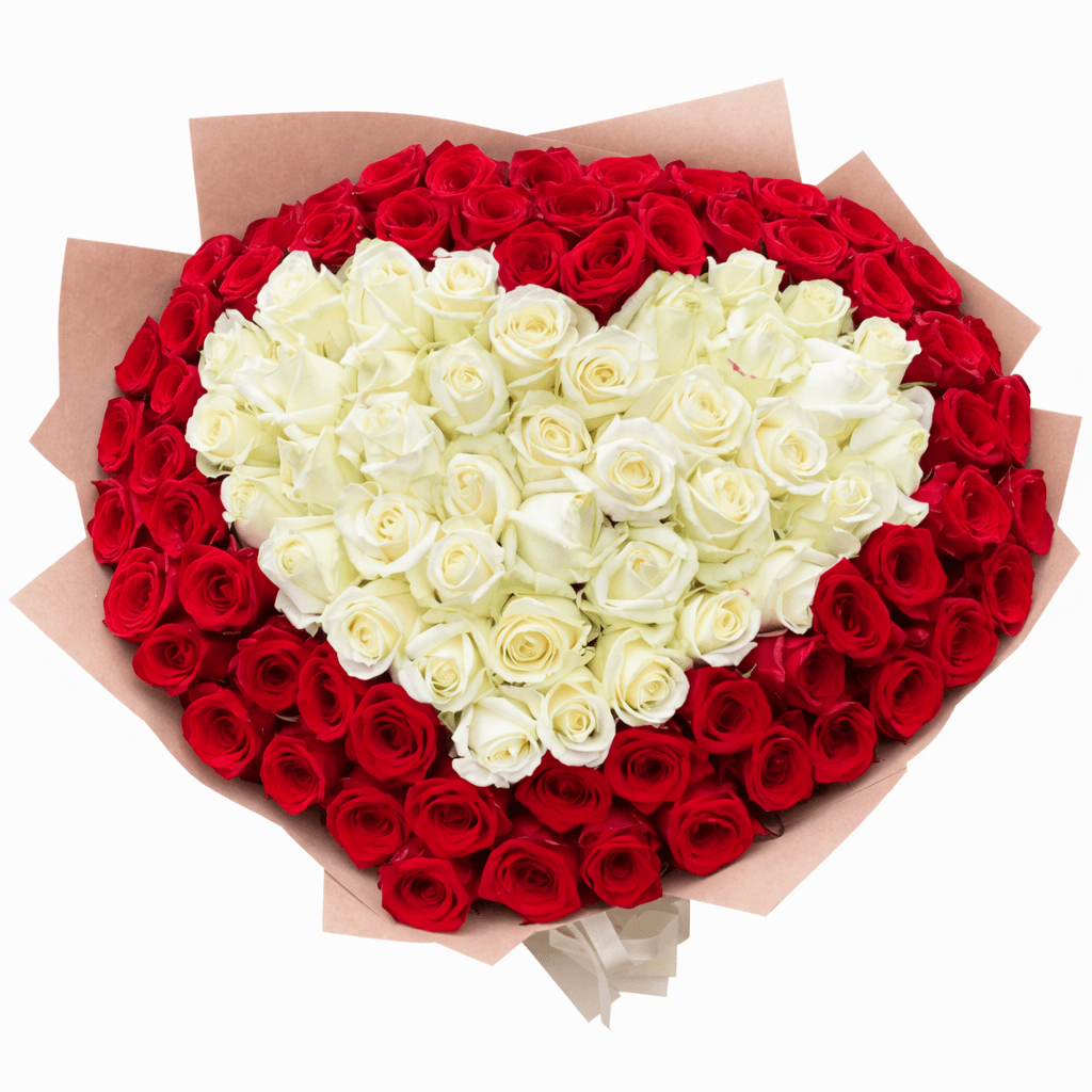 Букет из 101 роз «Сердце» выполнен в смешанной форме — белые и красные розы в форме красивого сердца. Ваше желание будет исполнено с этим мощным символом любви и надежды.