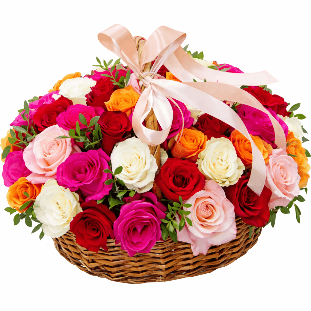 Головна Троянди Жовті троянди 51 троянда Еквадор яскравий мікс у кошику