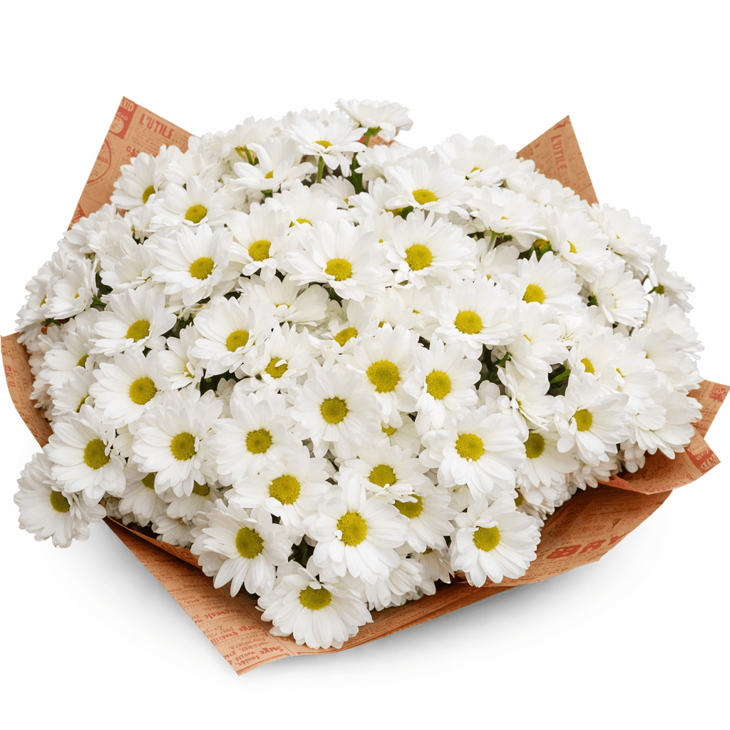 Сорти хризантем Бакарді майже нарциси. У них гладкі білі пелюстки та жовто-зелена серцевина. 25 кущових хризантем, прикрашених крафтовою упаковкою, перетворяться на елегантний букет на будь-яке свято. Чи потрібний вам букет на всі випадки життя чи просто для того, щоб підбадьорити когось, наш асортимент кольорів ідеальний!