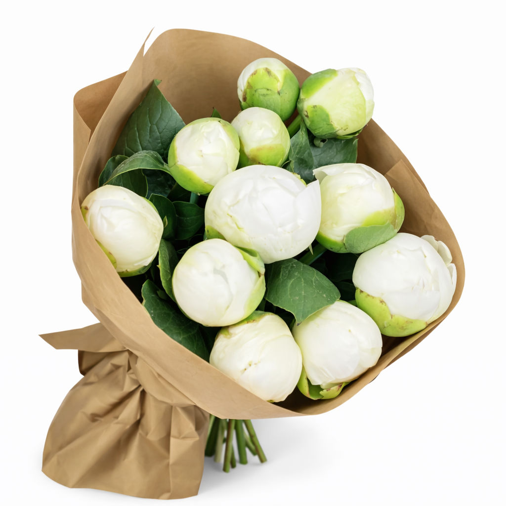 Букет із 11 півоній «Білі Бутони» — ніжність та елегантність у кожній деталі