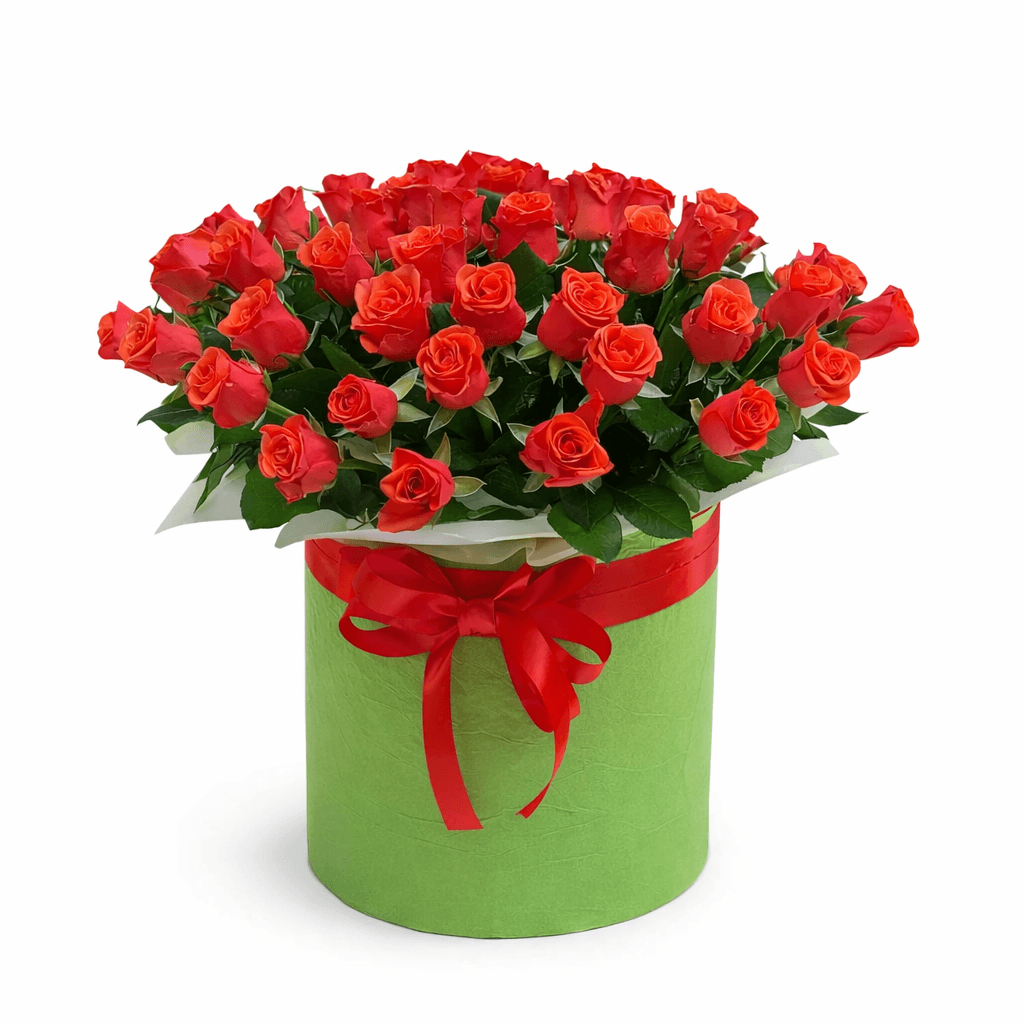 Отримайте букет з 51 червоної троянди в капелюшної коробки з доставкою завтра або будь-якого дня тижня.