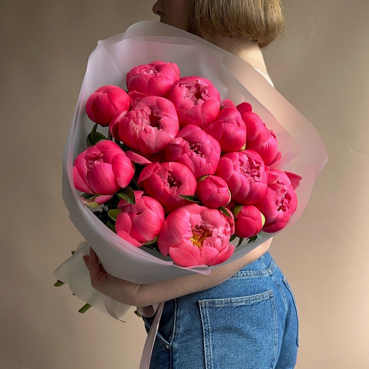 • Пионы ярко‑розовые — 15 шт.