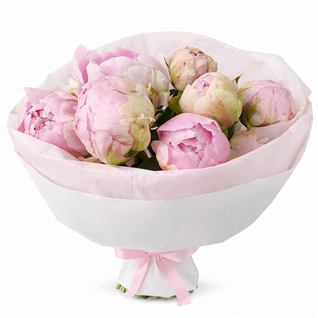 Півоновий букет «Ніжна Троянда» — це красивий спосіб сказати про почуття без слів і подарувати людині справжній квітковий настрій.