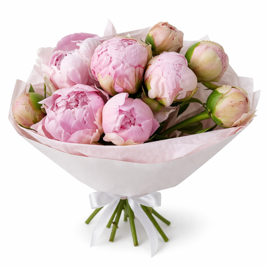 Букет півоній «Рожевий Шовк» — це ніжна та елегантна композиція зі свіжих рожевих півоній, яка передає легкість, романтику та витончену красу. Повітряні пелюстки, м’який відтінок і пишна форма бутонів роблять цей букет ідеальним подарунком для особливих моментів. Він чудово підходить для зізнання в почуттях, привітання зі святом, днем народження або просто як знак уваги без приводу.