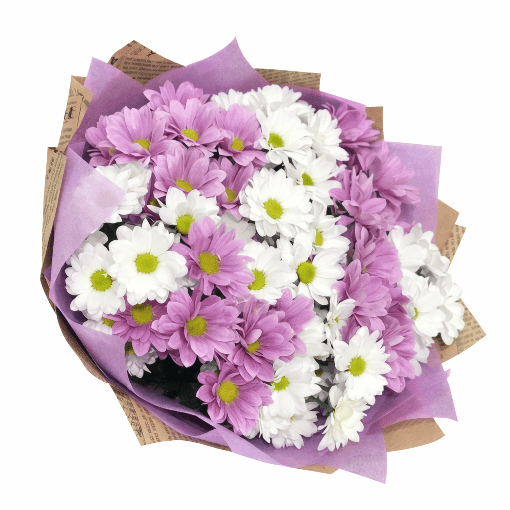 Склад букету: Хризантема кущова 25 шт., Крафт, стрічка Отримайте гарний букет для коханої людини. Ми пропонуємо квіти найвищої якості та