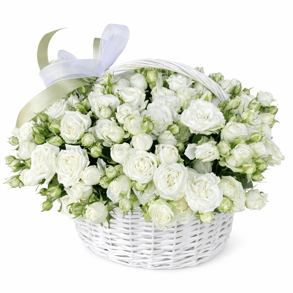 Головна Троянди Кущові троянди Міс Бомбастик білий у кошику 41 гілка