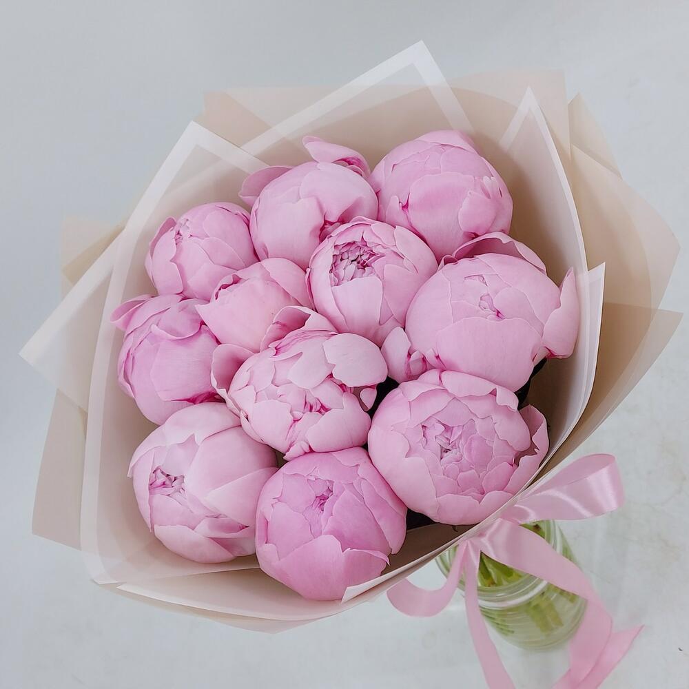 Этот букет создан для тех, кто ценит утончённость и мягкую эстетику. Светло‑розовые пионы с их многослойными лепестками выглядят невероятно нежно
