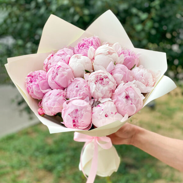 Этот роскошный букет создан для тех, кто ценит нежность, стиль и натуральную красоту. Пышные розовые пионы — символ романтики и